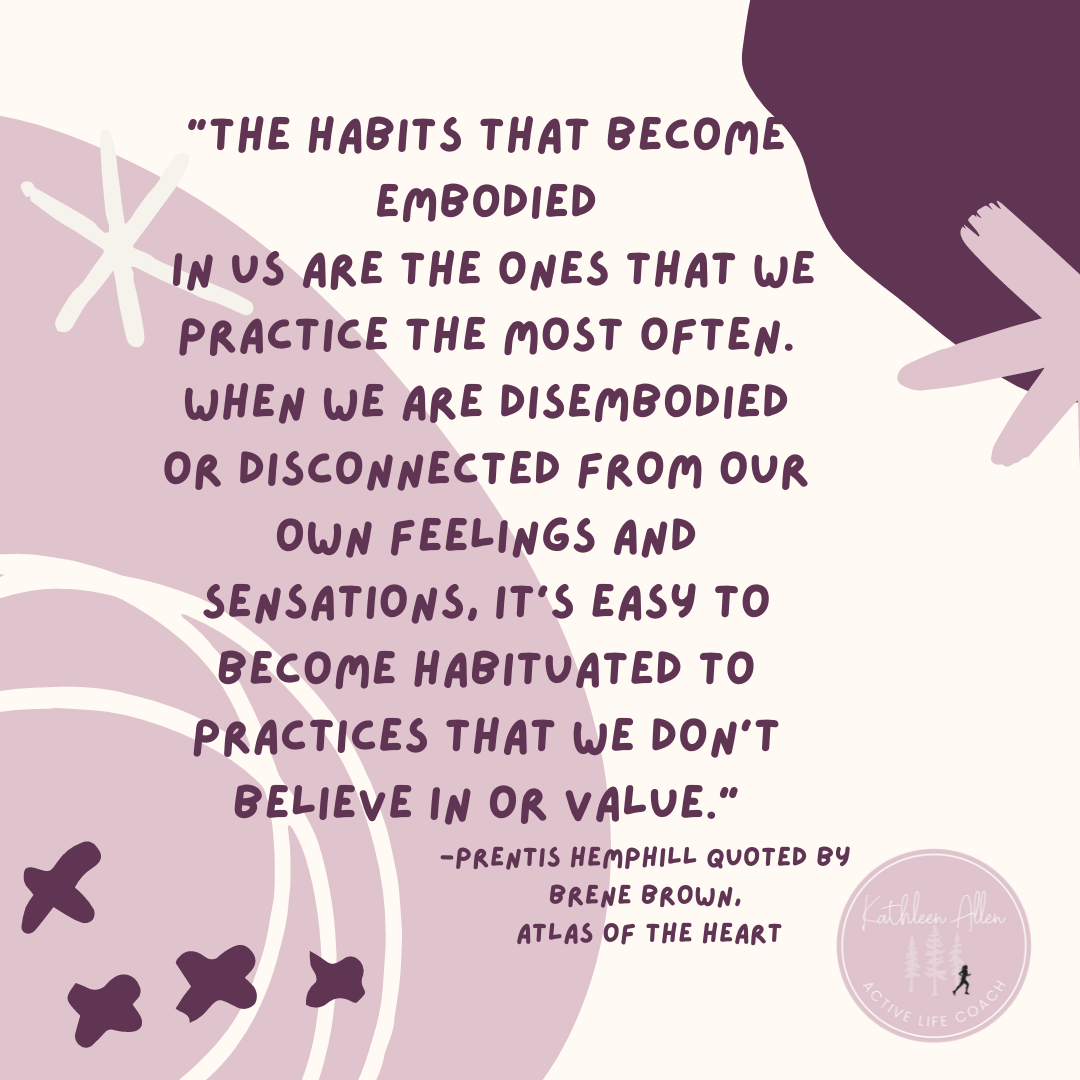 Brene goes on further to explain that our bodies let us know when we are not living in alignment with our beliefs or values in the form of insomnia, injuries, exhaustion, depression and anxiety. I would dare add obesity. I know that is a hot topic and one that might not be universally accepted but, for me, one of the behaviors that I participate in when I am not willing to be tuned in with my feelings or life experiences is overeating which leads to weight gain/obesity. It really is not all bad news. It is an amazing arrangement, in fact, that our bodies are given to us to help alert us when we have gone “off plan”. Have you ever received a diagnosis that came with , “it can be caused by stress”. What is the stress most often related to? An event, circumstance or even belief conflict that we have not fully worked through, felt or faced. If we are willing to get out of our distractions and experience life to its fullest, our bodies are actually the vehicle designed to help us process it all. Our feelings are literally vibrations felt within our bodies. When we take the time to recognize and feel them, our bodies facilitate the relief of the stress that binds our progression and our ability to live life in alignment. Listening to our bodies is not just a cute way to curb our hunger or alleviate stress, but may be the key to fully living this human experience.