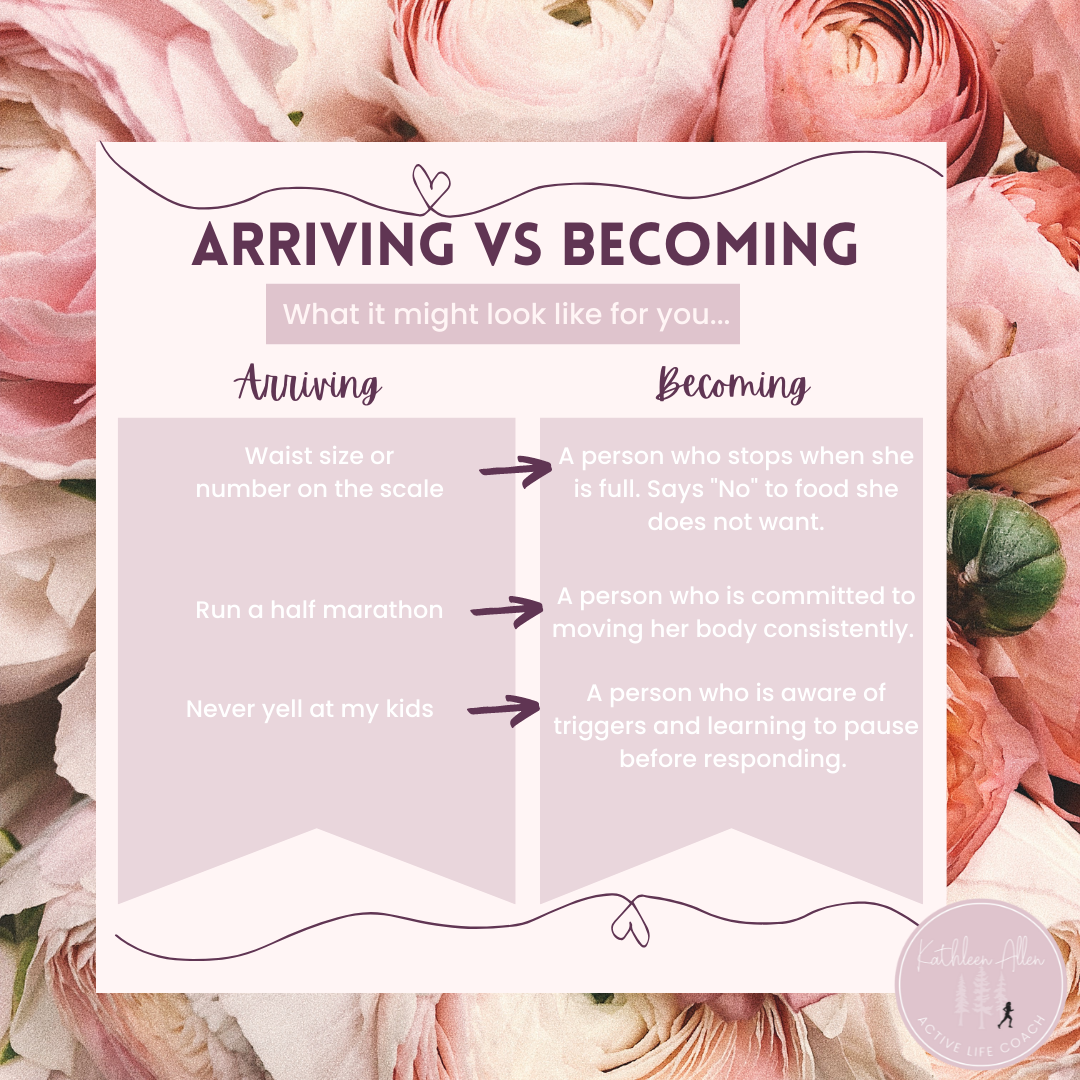 I like this idea because it shifts the focus away from “once I get there I will be happy” to “I am becoming the kind of a person who”.