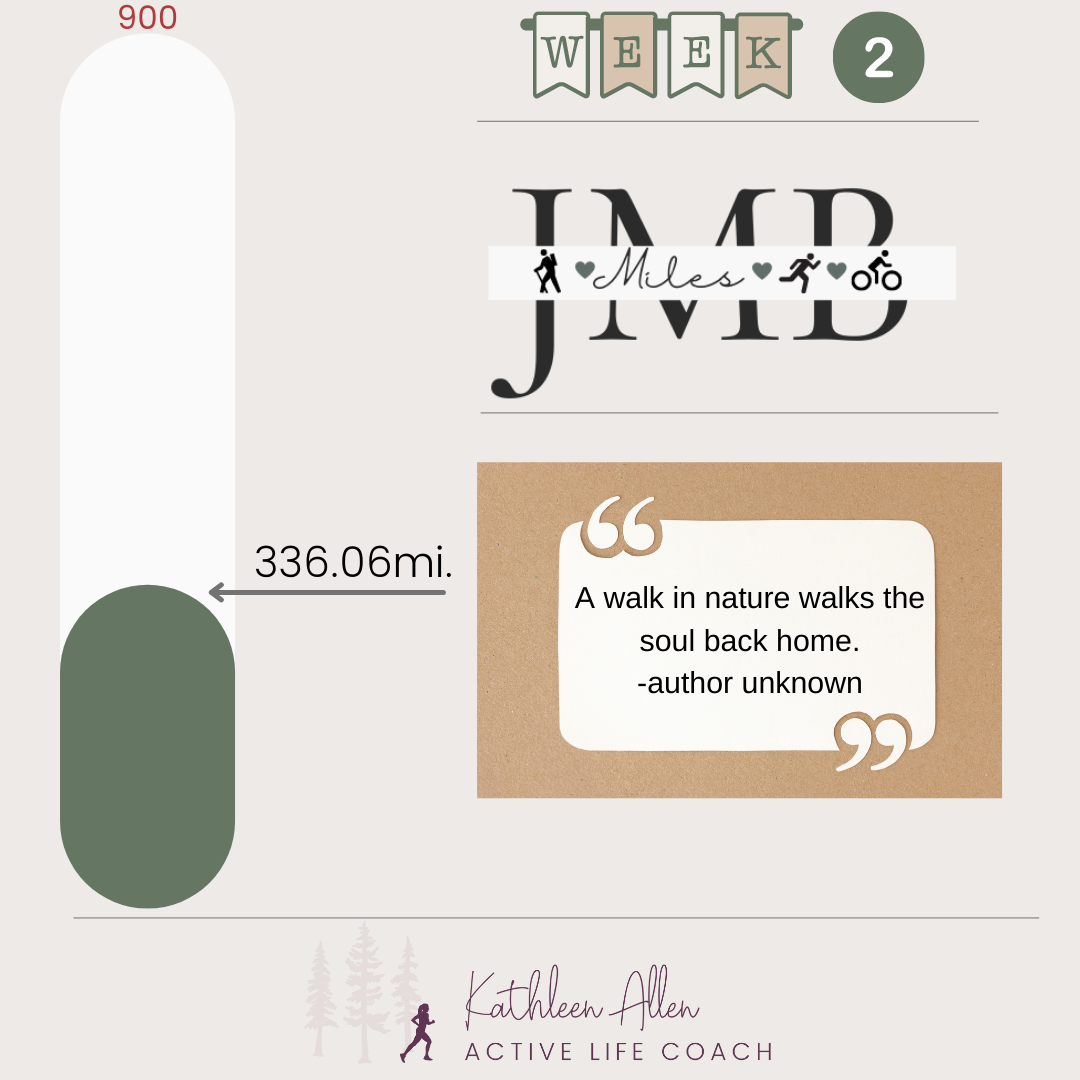 We are two weeks into our 11 week campaign and are already 1/3 of the way to the goal. I have to admit that there was a part of me that thought….what if we went viral and got to 9000 miles?! Cool huh? But then I decided whether 1 or 2 or 400 join me for #JMBmiles, is no matter.