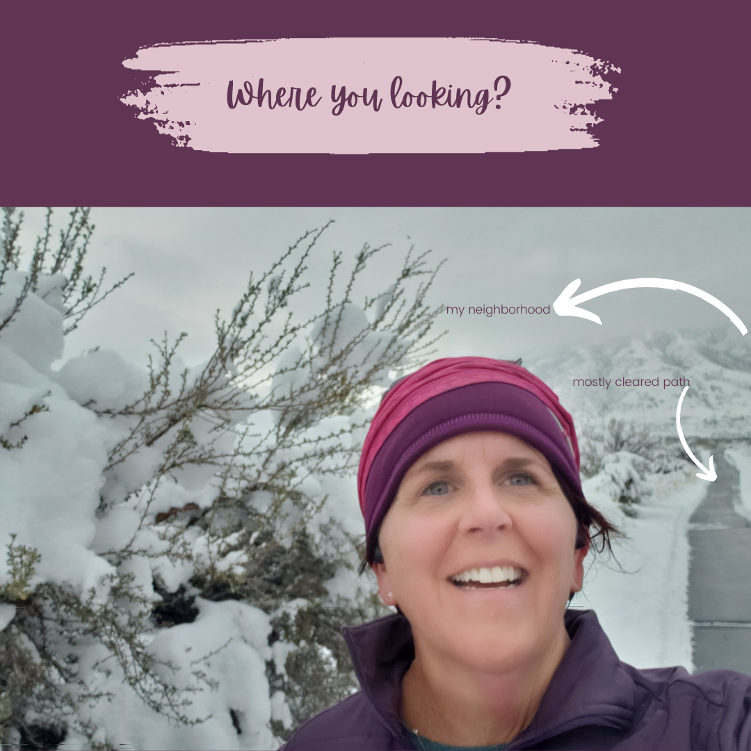 Here’s another cliche for you…”It’s not about you.” As in, when things come up that you have to deal with…get rid of the personalization…beating yourself up. According to Byron Katie, all of our pain in this life is our fighting against reality. If we can’t “love what is” as she suggests, how bout we at least stop with the blaming ourselves for what is and just deal and stay flexible. Instead of parking where you usually do, go to the plowed out park and change up your route.